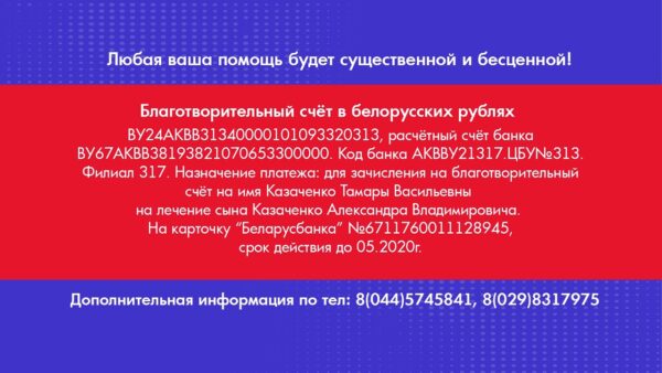 Помочь мужчине можно перечислив деньги на карточку или благотворительные счета, указанные на экране. Любая ваша помощь будет существенной и бесценной.