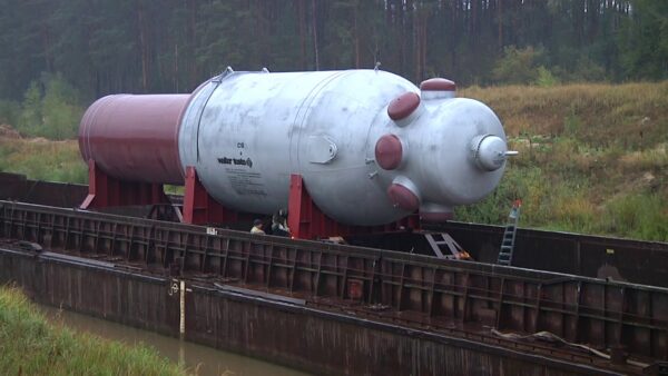 Этому событию предшествовала непростая, напряжённая и скрупулёзная подготовка, в том числе связанная с решением многочисленных вопросов по приёму аппарата на причале, его аккуратной выгрузке с баржи, погрузке на специальный транспорт и обеспечение безопасности по ходу следования на технологический объект. Баржа с верхней частью реактора R-2001 прибыла к заводскому причалу 24 сентября 2019 года. Процесс выгрузки/погрузки крупногабаритного оборудования на реке Припять для специалистов завода – процедура знакомая и понятная. К её проведению были готовы. Но после того, как представители РТУП «Белорусское речное пароходство» измерили глубину при входе в канал причала, оказалось, что она недостаточна для прохода баржи. Как бы там ни было, речники самостоятельно смогли благополучно затянуть баржу в канал, засыпать его входной перешеек и дать возможность работникам участка №1 цеха №9 при помощи специальной помпы поднять уровень воды в канале до отметки, необходимой для окончательного подвода баржи к причалу и начала выгрузки оборудования. Процесс подготовки причала для выкатки с баржи груза начался 25 сентября. Это технически сложное мероприятие требует больших затрат по времени – двое-трое суток. Сообща с этой задачей справились всего за сутки. Дальше к работе подключились специалисты цеха №14 – транспортного. Здесь стоит отметить их слаженную и высокопрофессиональную работу по выкатке с баржи верхней части реактора R-2001 и его перевозке до площадки КУКК. Специалисты, несмотря на сложные дорожные и метеоусловия (шёл проливной дождь), в составе одного автопоезда совершили крутой и затяжной подъём. Самая сложная, заключительная, стадия доставки верхней части реактора R-2001 началась уже после его прибытия на территорию завода. Аппарат предстояло перегрузить через действующие технологические трубопроводные и кабельные эстакады с использованием грузоподъёмного крана. Работниками ремонтной мастерской №2 в максимально краткие сроки (всего за 5 дней) собрали кран и обеспечили проведение его полного технического освидетельствования. Сам процесс перегрузки реактора через эстакады проходил в вечернее время, что, безусловно, осложняло проведение работ. Тем не менее экипаж машинистов крана блестяще с ними справился. Реактор благополучно доставлен на площадку установки каталитического крекинга, что, без сомнения, положительно повлияет на качество и скорость выполнения ремонтных работ на этом объекте.