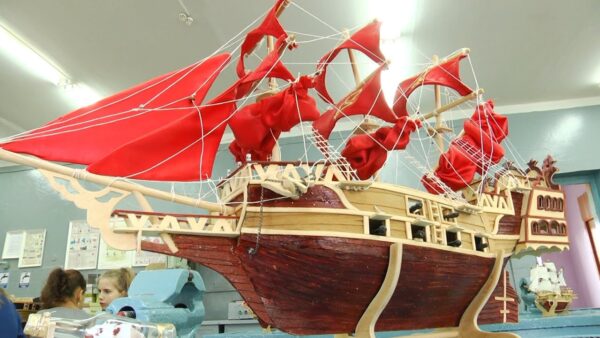 Корабль с алыми парусами, как раз тот, на котором должен был приплыть принц к девочке Ассоль из известной повести Александра Грина. Рядом соседствуют и другие парусники – те, на которых плыли первооткрыватели новых земель, торговые суда, пиратские фрегаты. Все это дело рук мозырских школьников, тех, кто посещает объединение по интересам центра технического творчества. Руководитель кружка – Светлана Слива, причем, руководит уже несколько десятков лет. Всех кораблей, изготовленных под чутким руководством наставницы, и не счесть. Каждый парусник – это кропотливая работа, в которой фантазия и творчество сочетаются с политехническими знаниями. При изготовлении моделей школьники закрепляют информацию, полученную на уроках физики, математики, черчения. О том, что конструирование моделей кораблей – не просто интересное хобби, но и весьма полезное увлечение, говорят многочисленные дипломы и грамоты, полученные на различных конкурсах. Причем, это не только гордость. Ребят, занявших призовые места, рады видеть в числе студентов ведущих технических ВУЗов. Каждый корабль – своего рода произведение искусства, на творение которого уходят месяцы работы, дорогостоящие материалы, а главное, создание шедевра невозможно без желания творить и невероятной усидчивости. Такой подарок действительно оценят. Приковывают внимание и модели кораблей, собранные в бутылках. Это, можно сказать, ювелирная работа. Один просчет и все насмарку. Вот и у Богдана Адамовича первый, так сказать, блин, да и второй, вышли комом. Но молодой человек уже приловчился.