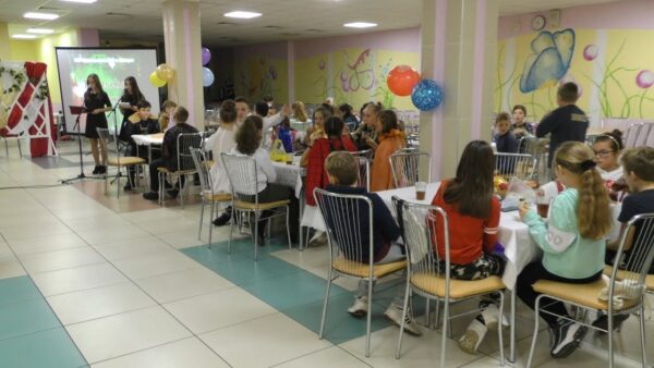 Столовая школы №16 один раз в год превращается в немецкую гостиную. Здесь собираются дети, родители и педагоги. Общение, песни, танцы. В этот раз начало вечера посвятили родителям, которые принимают активное участие в школьной жизни своих детей. Кульминация праздника – театральное представление на немецком языке. Обеденный зал в качестве театральных подмостков, педагог в качестве режиссера, все роли исполняют учащиеся разных классов. Все вместе замахнулись на Уильяма Шекспира. Правда, его пьесу «Ромео и Джульетта» не только перевели на немецкий, но немного переделали, лишив драматического конца. В роли Ромео –Ярослав Леонович, Джульетту сыграла Даша Зданевич. По задумке авторов, в судьбу Ромео и Джульетты вмешались неземные силы. Даша Коваленко исполнила роль инопланетянки. Сделать процесс изучения иностранного языка увлекательным, научить детей не только говорить на немецком, но и думать и, если можно так сказать, чувствовать язык. Немецкая гостиная распахивает свои двери уже в шестой раз. По мене взросления артистов, растет словарный запас, а вместо простых детских сказок, теперь здесь осваивают более сложные постановки.