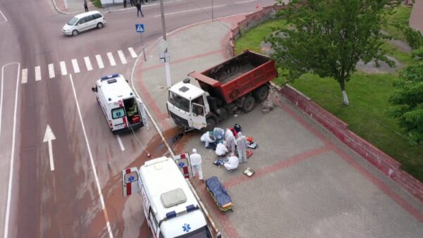 Серьезная авария произошла сегодня, 5 июня, в районе 16 часов на площади Горького. По предварительной информации, водителю Маза, он спускался с Комсомольской, стало плохо. Неуправляемая машина начала на скорости катиться с горы, столкнувшись при этом с микроавтобусом «Мерседес». От удара бус отбросило на ограждение, он упал во двор 25 дома на Комсомольской. Очевидцы вызвали ГАИ и скорую. Медики, две бригады, приехали через несколько минут, они боролись за жизнь мужчины около часа. К сожалению, спасти его не удалось. Подробности в ближайших выпусках.