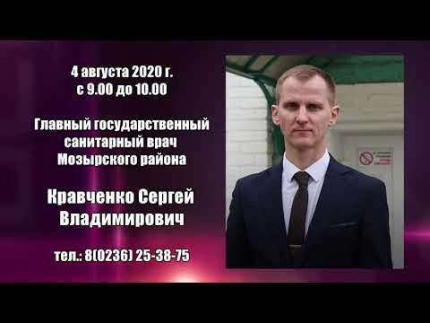 Государственное учреждение «Мозырский зональный центр гигиены и эпидемиологии» информирует о том, что 4 августа 2020 года с 09.00 до 10.00 в государственном учреждении «Мозырский зональный центр гигиены и эпидемиологии» пройдет прямая линия с главным государственным санитарным врачом Мозырского района Сергеем Владимировичем Кравченко. Позвонив в указанное время по телефону 25 38 75, вы сможете задать вопросы о выполнении требований законодательства в области санитарно-эпидемиологического благополучия населения Мозырского района.