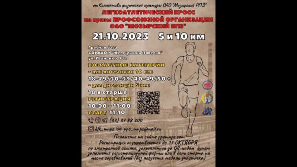 В субботу 21 октября гребная база СДЮШОР «Жемчужина Полесья» уже в третий раз примет легкоатлетический забег на призы первичной профсоюзной организации ОАО «Мозырский нефтеперерабатывающий завод» Белхимпрофсоюза