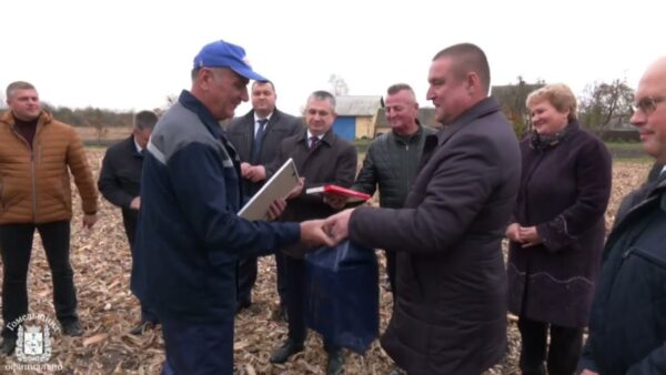 В Мозырском районе завершается уборка кукурузы на зерно. Самые большие площади и самая большая урожайность, традиционно, у совхоз-комбината «Заря». А самая душевная традиция предприятия – чествование передовиков прямо в поле. Недавно тоже сделали небольшую паузу в уборочной – заслуженным работникам предприятия были вручены благодарственные письма Гомельского облисполкома. Само награждение проходило во время рабочей поездки вице-премьера Леонида Зайца в Мозырский район.