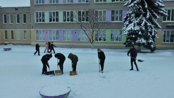 Молодежный волонтерский отряд первой школы «Добрая воля» в зимние снежные дни без дела не сидит. Активно чистят снег и на школьном дворе, и помощь предлагают жителям частного сектора