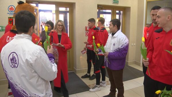 Предъявить пропуск и весеннее настроение сегодня утром требовали на проходной Мозырского НПЗ. В ответ заводчанкам дарили желтые тюльпаны и приглашение на открытие нового футбольного сезона