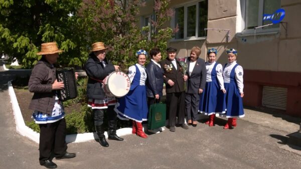 Такие живые концерты на Мозырщине организуют уже несколько лет подряд, во время поздравительных мероприятий накануне Дня Победы и Дня независимости. В этот раз у председателя райисполкома Елены Павлечко – особая миссия: ветеранам района вручают юбилейные знаки «80 лет освобождения Гомельской области от немецко-фашистских захватчиков». Свое, почетное место, памятная награда заняла и на парадном пиджаке Бориса Федоровича.