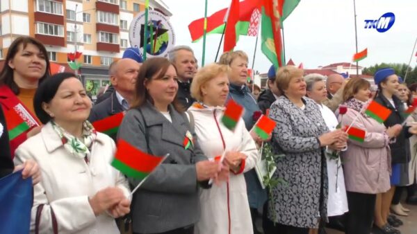 Торжественное чествование государственных символов Республики Беларусь прошло в Мозыре у Доски почета. В День Государственного флага, герба и гимна на главной площади собрались десятки жителей района: руководство района и депутаты Палаты представителей Национального собрания Республики Беларусь, представители трудовых коллективов и общественных объединений, учащаяся молодежь. Флаг, герб и гимн – это символы исторической памяти, которые связывают воедино героическое прошлое, настоящее и будущее белорусского государства. В рамках празднования мозырянам – представителям самых разных сфер, — вручили заслуженные награды: благодарности обисполкома и райисполкома и юбилейные медали «80 лет освобождения Гомельской области». Завершилась торжественная церемония принесением клятвы верности государственным символам. Ее произнесли активисты районного комитета БРСМ. И музыкальным патриотическим флешмобом от юных талантов Мозырщины.