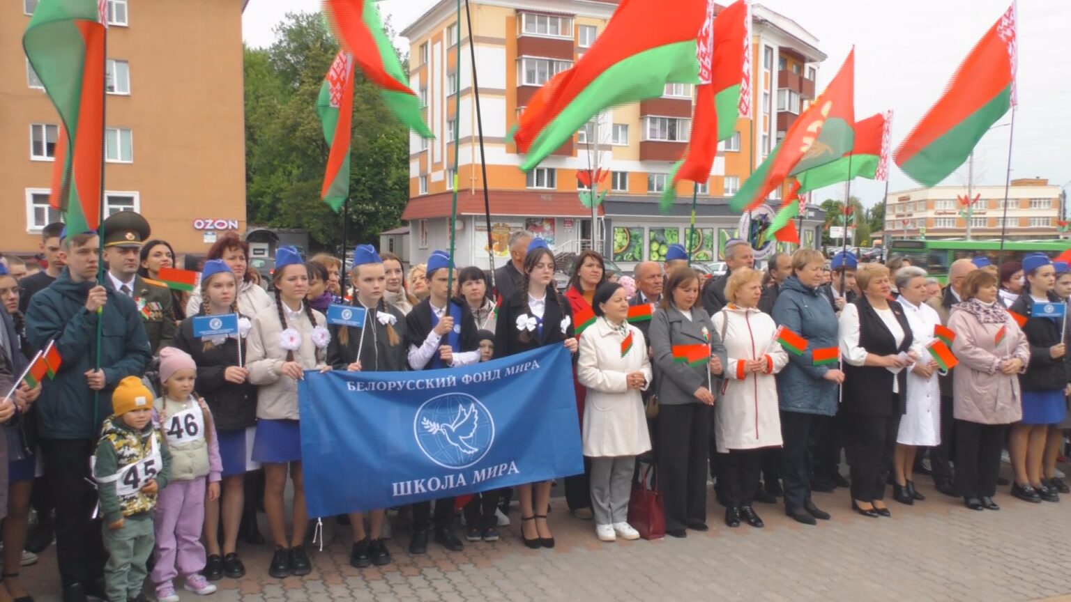 На площадке у Доски почёта, прошло торжественное мероприятие. В нем приняли участие руководство района и депутаты Палаты представителей Национального собрания Республики Беларусь, представители трудовых коллективов и общественных объединений, учащаяся молодежь.
