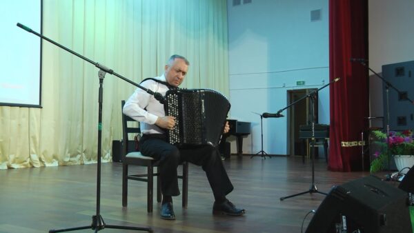 Юрий Шишкин. Музыкант-легенда, один из лучших баянистов современности, с гастролями обколесил полмира. участвовал в соревновании-концерте в Голландии «Баян против органа». Заслуженный артист России, лауреат международных конкурсов, профессора Харьковской и Шанхайской консерватории. Всех регалий не перечесть. В зрительном зале Мозырского музыкального колледжа нет пустых мест. Ведь это концерт музыкального классика.