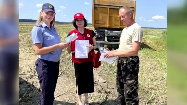 А чтобы поднять силу их духа волонтеры Мозырского отделения Белорусского общества Красного Креста совместно с сотрудниками ГАИ ОВД Мозырского райисполкома провели дружелюбную и освежающую акцию. Приехав в гости к властелинам полей, волонтеры раздали прохладную питьевую воду и памятки о правилах безопасности в жаркий летний период и о профилактике травматизма. Подобные акции проводятся уже не первый год.