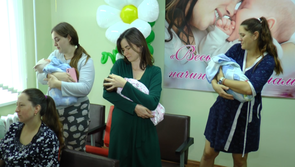 Маленькие граждане республики Беларусь уютно сопели у своих мамочек на руках. Некоторые уже показывали характер. Кстати, родились в эти дни и двойняшки. Так что на 25 мам 26 малышей. Еще пять женщин были в родильном зале. Статистика роддома на 12 часов дня. Главный врач района Юлия Мягкова, многодетная мама, статистику предлагает улучшить.