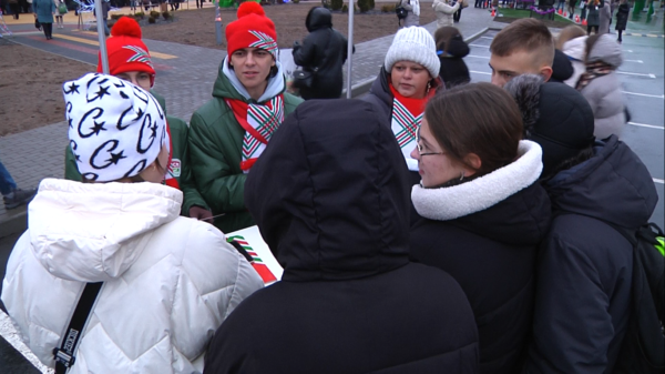 Первый секретарь ЦК БРСМ Александр Лукьянов рассказывает про городской квест «Это всё моё родное». Мероприятие прошло в рамках «Марафона единства» на площадке перед ФОЦ «Полесье-Арена».