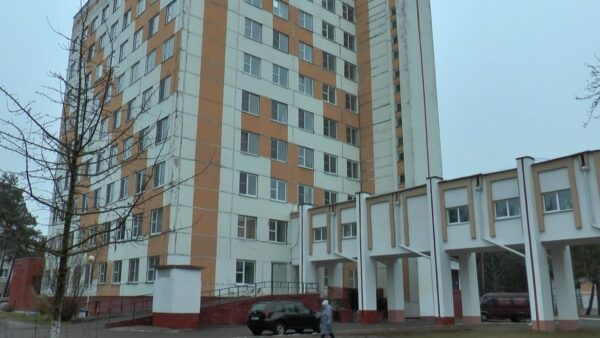 Калинковичская районная больница. В этом девятиэтажном здании этажи поэтапно отдают в руки строителям. Стадия активного ремонта на втором из них завершена. Полномочия строители передали медикам.