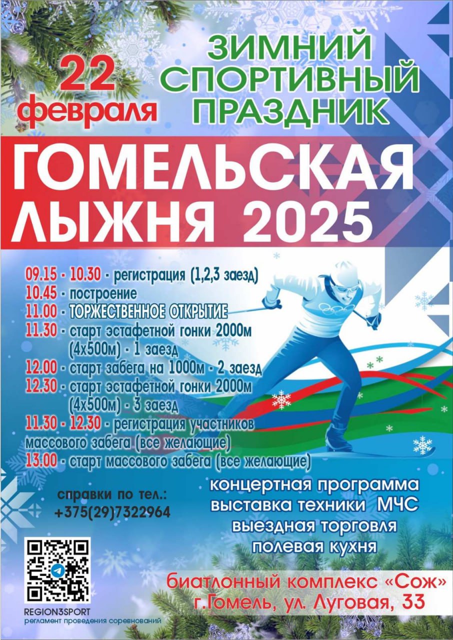 На биатлонном комплексе «Сож» 22 февраля пройдут соревнования по лыжному спорту, сообщает Гомельщина официально.