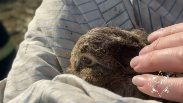 Трогательная история из Могилевщины. Женщина спасла из горящей травы зайчонка.