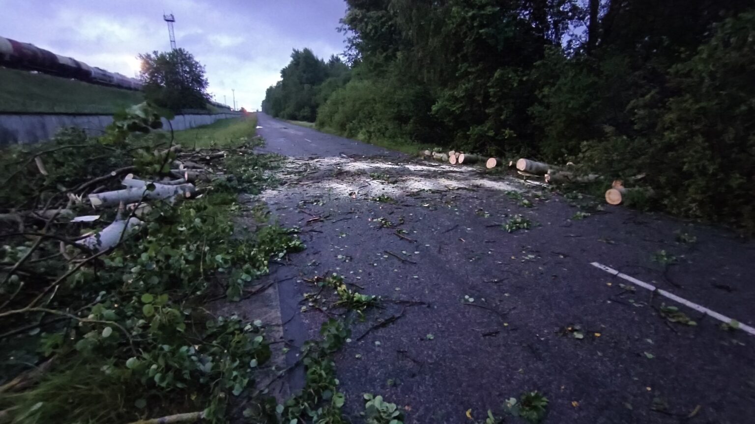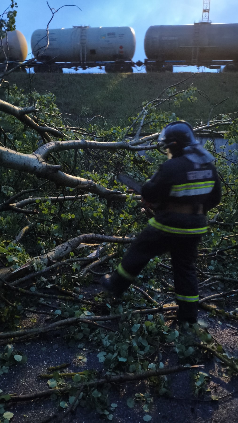 Подразделения МЧС привлекались для распиловки упавших на проезжую часть деревьев в районе ул. Шоссейной, а также ст. Барбаров (трасса Мозырь — Лельчицы). Пострадавших нет.