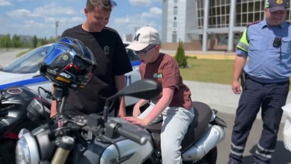 Там их уже ждал именинник с мамой. Теплые слова, воздушные шары и, конечно, подарки – футбольный мяч и сертификат на новые очки. А еще Влад смог почувствовать себя настоящим байкером – примерил экипировку и оседлал железных коней. По словам мамы мальчика Влада Ларисы, юный юбиляр оценил такое яркое поздравление!