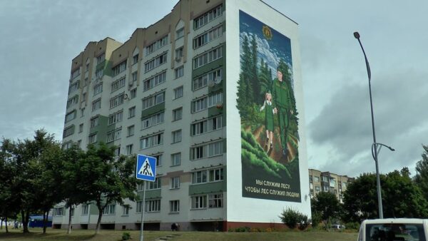 Держась вместе за руки, они идут вперед, оставив после себя новый лес, который вырастет для будущих поколений. Мурал виден издалека и находится неподалеку от лесопарка «Молодежный». Напоминая о том, как важно обеспечивать порядок и давать новую жизнь полесским красотам.