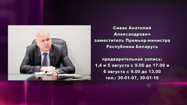 8 августа 2025 года с 11 часов в Мозырском райисполкоме выездной прием граждан проведет Сивак Анатолий Александрович заместитель Премьер-министра Республики Беларусь.