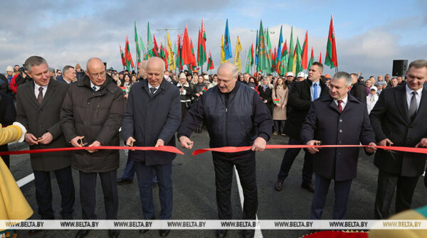 Глава государства в торжественной обстановке перерезал символическую красную ленточку. На церемонию были приглашены представители трудовых коллективов дорожных организаций, участвовавших в строительстве моста, жители Мозырского района. По сложившейся традиции ко Дню Октябрьской революции людям преподносят подарки — значимые, масштабные объекты, и обновленный мост — один из них.