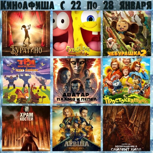 Свежая киноафиша с 22 по 28 января, сообщает официальная группа кинотеатра «Мир».