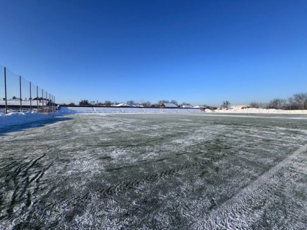 После мощного циклона «Улли» территория стадиона оказалась под плотным снежным покрывалом высотой до полуметра, передает телеграмм-канал Мозырский нефтепеработчик.