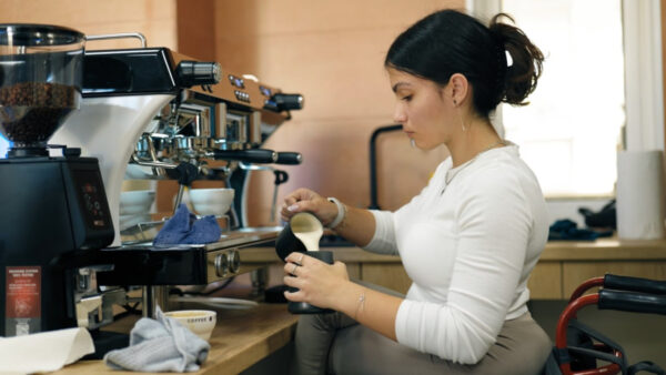 К примеру, Наталья Астанина уже семь лет работает бариста. Чтобы освоить латте-арт, девушка приехала из Минска в Мозырь. В столице попросту не нашлось места для обучения. А в городе на Припяти открылся первый в стране безбарьерный класс для обучения профессии бариста.