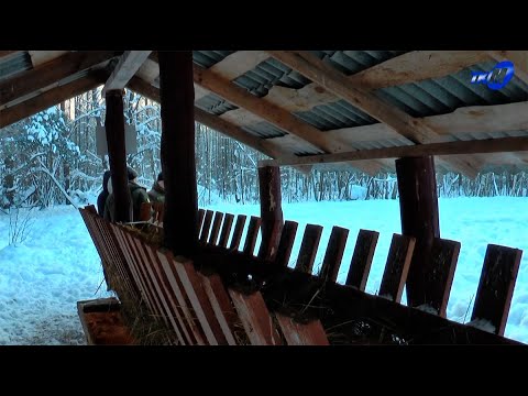 Кажется, что этой зимней лесной опушкой мог вдохновиться сам Пушкин. Там, на заснеженных дорожках, следы невиданных зверей. Избушка там на курьих ножках стоит…В мозырском варианте, правда, стоит и с оконцами, и с дверьми. Для сотрудников лесничества и охотников этот домик – островок комфорта. Есть и кровать, и тумбочка, и электричество. А с высоты наблюдать за дикой природой – одно удовольствие. Звери к смотровой площадке подходят часто.