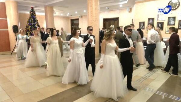 В этот субботний вечер в Мозырском драматическом театре было волнительно и красиво: дамы в вечерних платьях и кавалеры в костюмах кружили в ритме вальса, полонеза, мазурки и других танцев 19-го века. Зимний бал уже становится городской традицией, и с каждым сезоном собирается все большее количество гостей.
