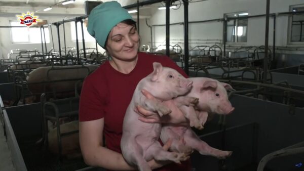 На ферме животные появляются на свет, и находятся до момента реализации в производство. К 8 месяцам достигают порядка 130 килограммов. Есть животные с особым статусом «свиноматка». Это взрослые самки, которые используются для воспроизводства потомства. Средняя плодовитость – 11 поросят, но есть действительно, самки рекордсмены – приплод более 20 штук. Чтобы многодетную маму не нагружать, поросят распределяют по другим кормящим самкам. Надежда Савлук на ферме работает уже 10 лет, с момента открытия, знает, детенышам нужны особая забота и уход.