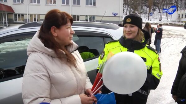 На площади Горького экипажи ГАИ дежурят часто. В этот раз компанию инспекторам составили гражданские, с шарами, цветами, подарками и отличным настроением. А как же по-другому! Ведь впереди – 8 марта.