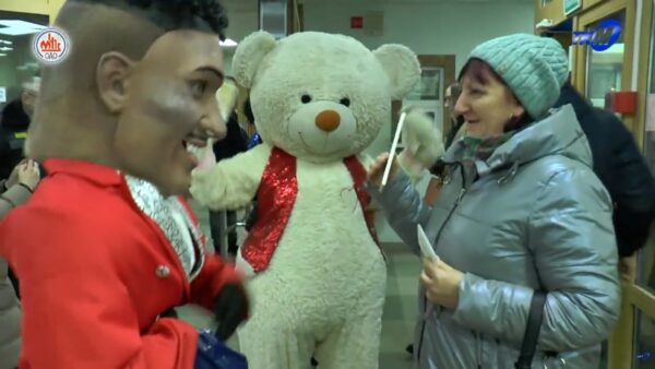 На старте рабочего дня заводчанок встречали ростовые куклы в образах звёзд российской эстрады, любимых женщинами исполнителей Артура Пирожкова и Стаса Михайлова. Они вручали милые сладкие презенты. А ещё был огромный плюшевый медведь, который дарил каждой девушке теплые объятия. И живое музыкальное сопровождение.