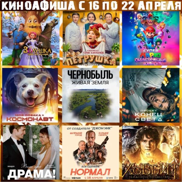 Свежая киноафиша с 16 апреля по 22 апреля, сообщает официальная группа кинотеатра «Мир».