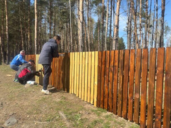 Трудовой десант ОАО «АСБ Беларусбанк», Центр банковских услуг №317 произвел покраску ограждения на всеми любимом мозырянами месте отдыха «Ольховица».