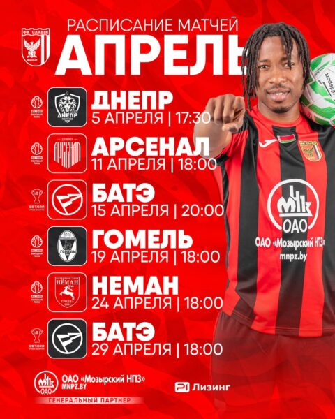 На заметку болельщикам «Славии-Мозырь»: расписание футбольных матчей на апрель
